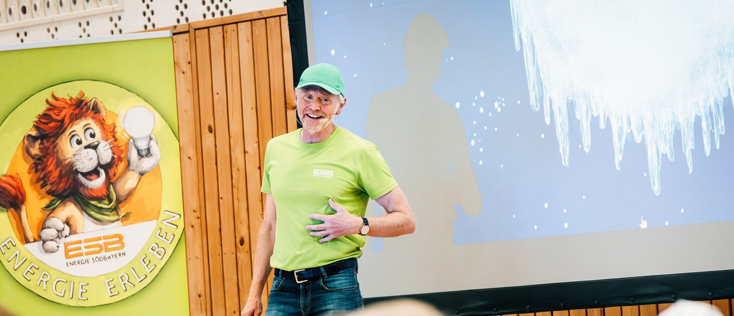 Seit über zehn Jahren tourt Susok mit dem ESB Lerntheater durch Grundschulen in Ober- und Niederbayern und vermittelt in den dritten und vierten Klassen Wissen rund um das Thema Energie und Energiesparen. „Die ESB liefert die Energie, wir nehmen sie auf und transformieren sie“, sagt er – in ein interaktives Programm, das den Kindern die komplexe Materie spielerisch näherbringt. Sein Ansatz beginnt nicht bei Steckdosen und Haushaltsgeräten, sondern beim Menschen selbst: beim Herzschlag, beim Atmen, beim Essen, beim Schlafen. Kinder müssten begreifen „alles ist Energie.“ Erst danach führt sein Programm zu Heizkörpern, Thermostaten und Kühlschranktüren.